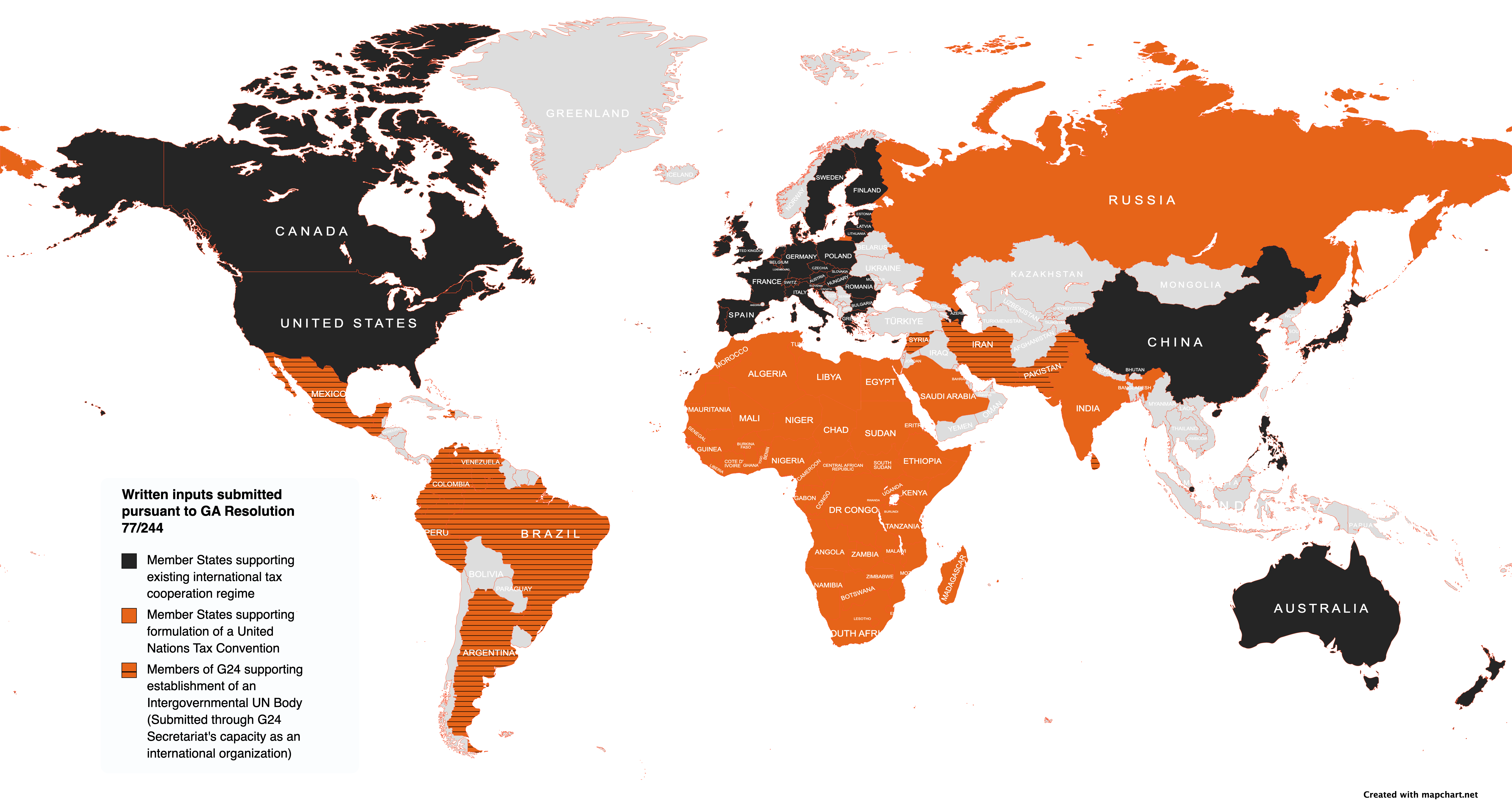 The Secretary General’s call for inputs prior to the drafting of his report received 92 submissions in total, which comprised 28 responses from Member States. They include consolidated group submissions from the European Union (on behalf of its 28 European Union Member States) and the African Group (on behalf of 54 African Union Member States). While Member States such as Armenia, Belarus, Costa Rica, Dominican Republic and Ukraine provided inputs solely on the current international tax cooperation practices adhered to by each of them, most member states submitting inputs utilized the opportunity to take a definitive stand regarding the existing tax cooperation regime and potential next steps. Although, the Secretary General is also conducting informal briefings with the stakeholders, the submission of written inputs provided the Member States with a platform to take a definitive stand publically, and provides an insight into what their positions will be as the at all further stages including the next General Assembly Session discussions when the Secretary General's report shall be considered for further action. This peek into the arguments and strength in numbers presented by both sides is not only going to be important for the tax justice movement to plan their next steps but is also likely to influence the opinions of other member states who have chosen to remain silent in this debate till most cards are on the table.