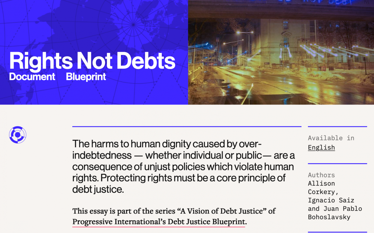 CESR's Ignacio Saiz and Allison Corkery, along with Juan Pablo Bohoslavsky, contributed to Progressive International's Debt Justice Blueprint, a series of essays that tackle the different dimensions of debt, confront policy questions with progressive principles, and aim to build a common vocabulary for the struggle of debt justice.