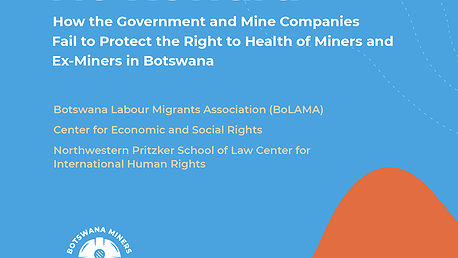 CESR partnered with the Botswana Labour Migrants Association (BoLAMA) and Northwestern Pritzker School of Law Center for International Human Rights to investigate enjoyment of the right to health by the people who built Botswana’s wealth – miners and their communities.