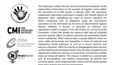 As oil-rich Angola appears before the Committee on the Elimination of Discrimination Against Women, a new report throws light on maternal health failures in the country.