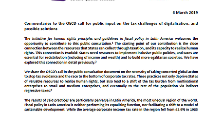 Submission by the Initiative for Human Rights Principles and Guidelines in Fiscal Policy in Latin America to the OECD.