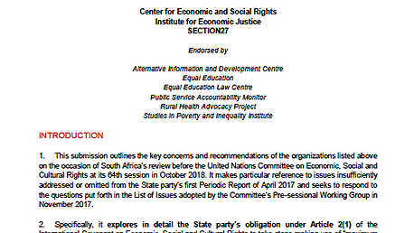 Joint Submission to the Committee on Economic, Social and Cultural Rights for South Africa’s first period report, 64th Session, October 2018